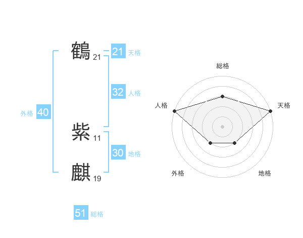 鶴 紫麒さんの総格は51画の3点!