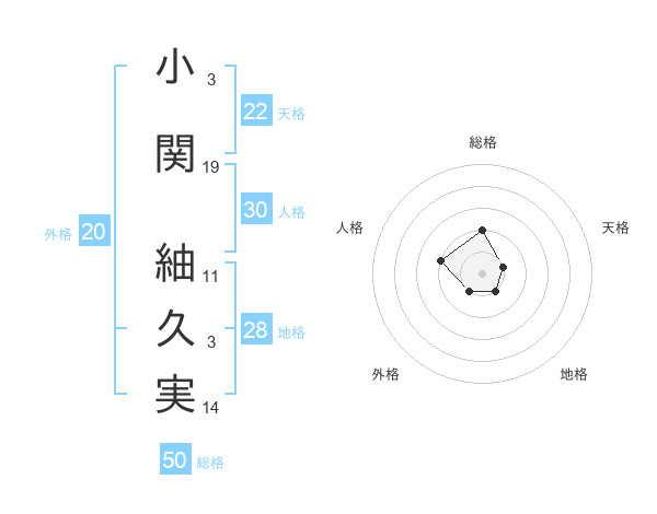 小関 紬久実さんを姓名の画数から五運を鑑定