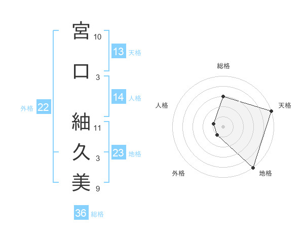 宮口 紬久美さんの天格は13画の5点!