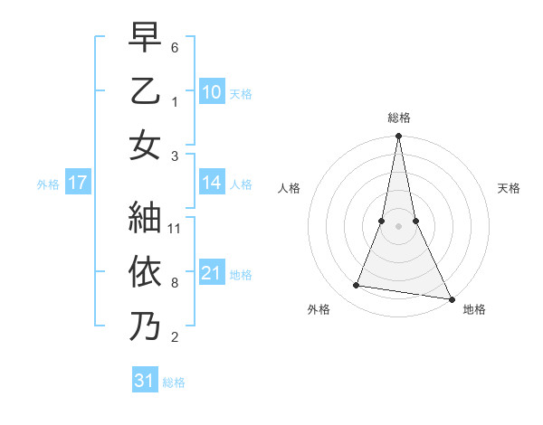 早乙女 紬依乃さんの総格は31画の5点!