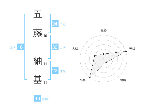 五藤 紬基さんの天格は24画の5点!
