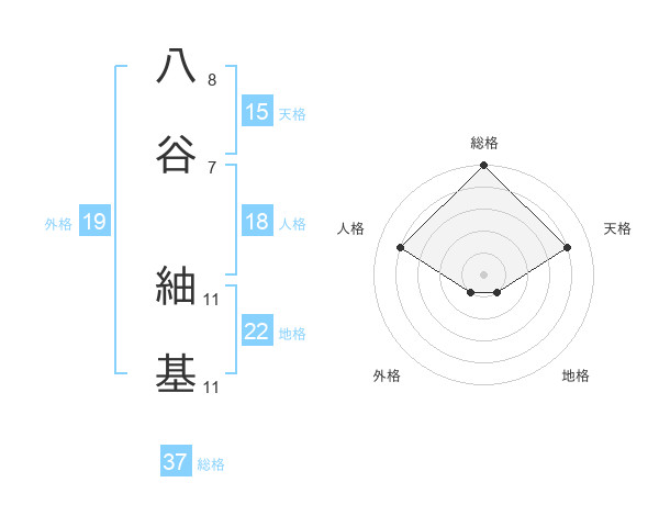 八谷 紬基さんの地格は22画の1点!