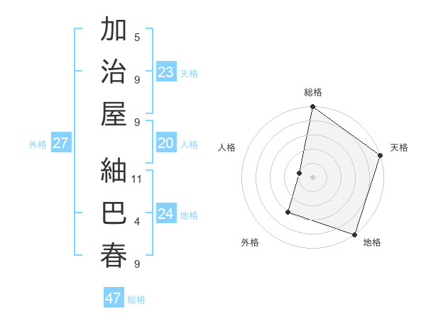 加治屋 紬巴春さんの総格は47画の5点