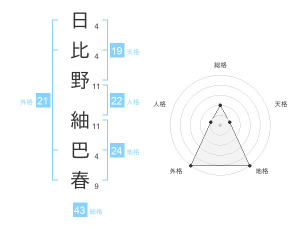 日比野 紬巴春さんを姓名の画数から五運を鑑定