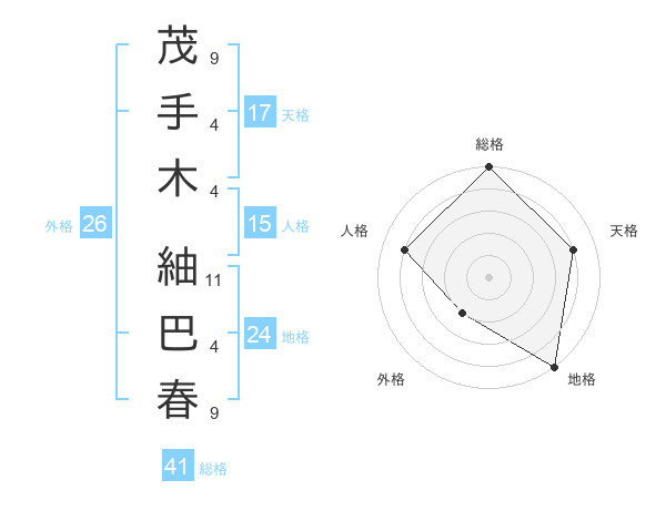 茂手木 紬巴春さんを姓名の画数から五運を鑑定