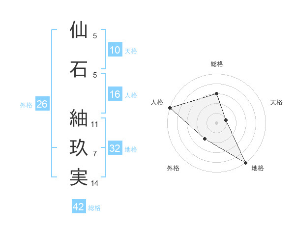 仙石 紬玖実さんを姓名の画数から五運を鑑定