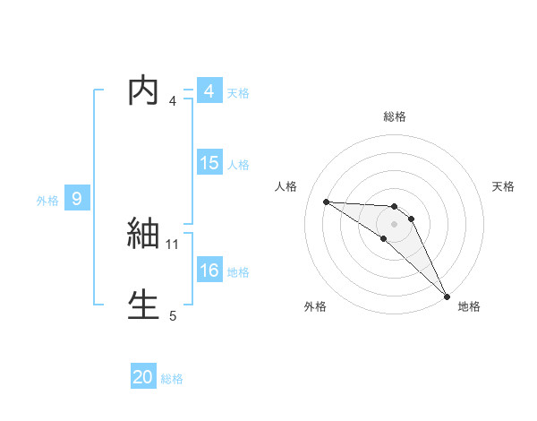 内 紬生さんの総格は20画の1点!