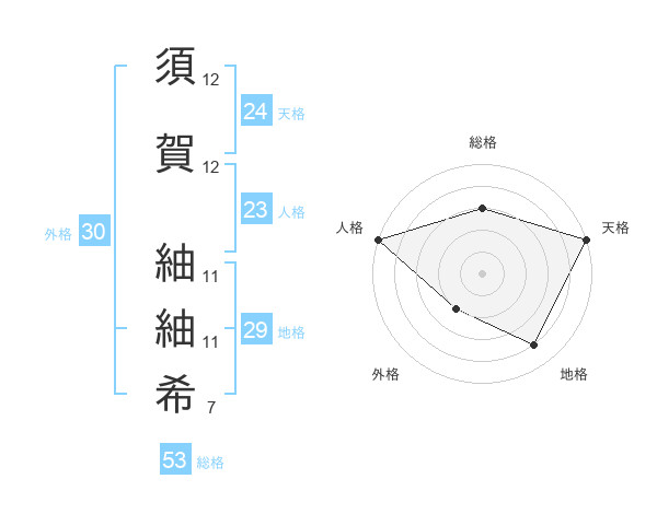 須賀 紬紬希さんの天格は24画の5点!