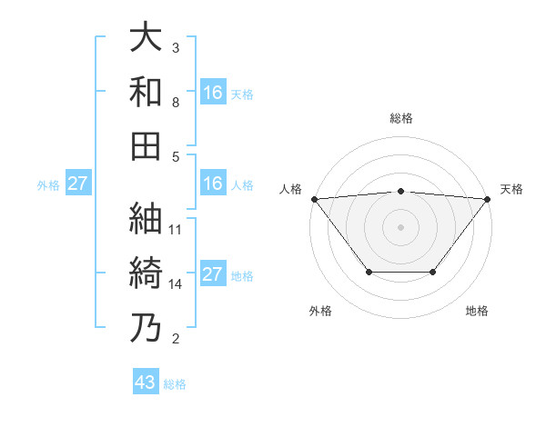 大和田 紬綺乃さんの天格は16画の5点!