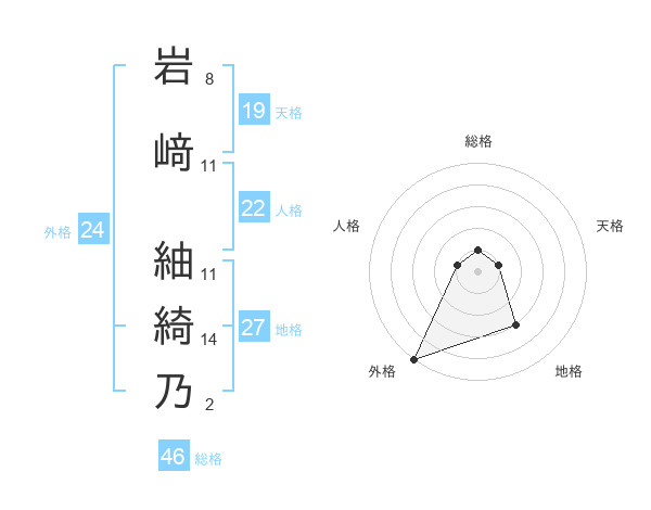 岩﨑 紬綺乃さんの外格は24画の5点!