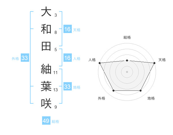 大和田 紬葉咲さんの天格は16画の5点!