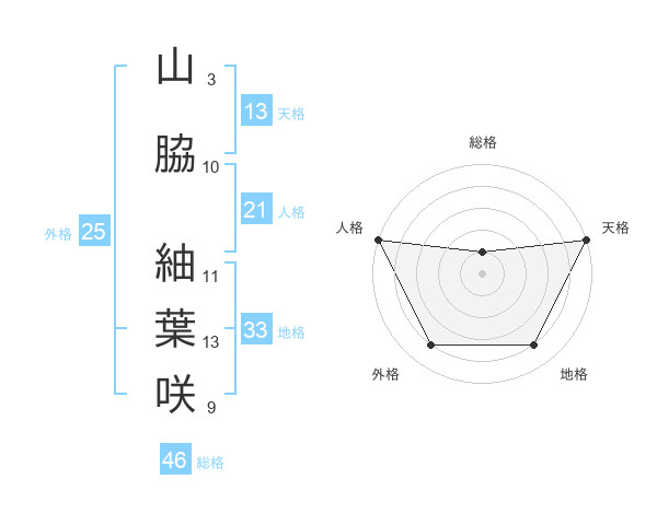 山脇 紬葉咲さんを姓名の画数から五運を鑑定