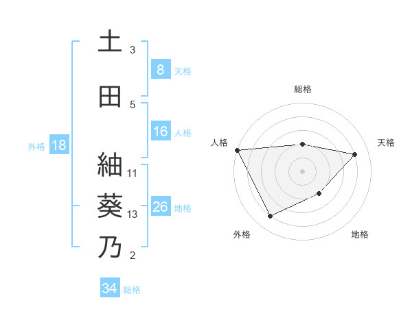 土田 紬葵乃さんを姓名の画数から五運を鑑定