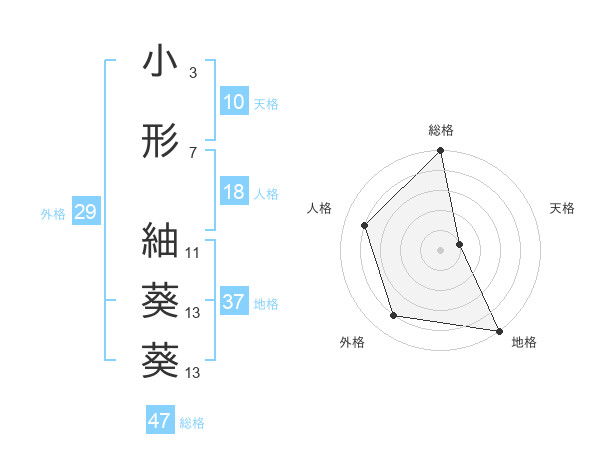 小形 紬葵葵さんを姓名の画数から五運を鑑定