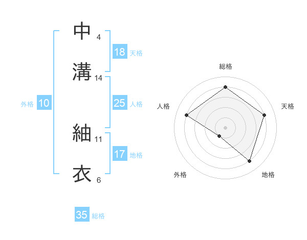 中溝 紬衣さんを姓名の画数から五運を鑑定