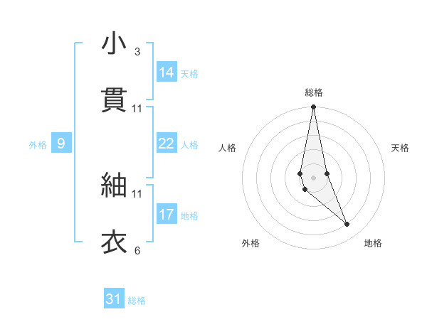 小貫 紬衣さんの総格は31画の5点!