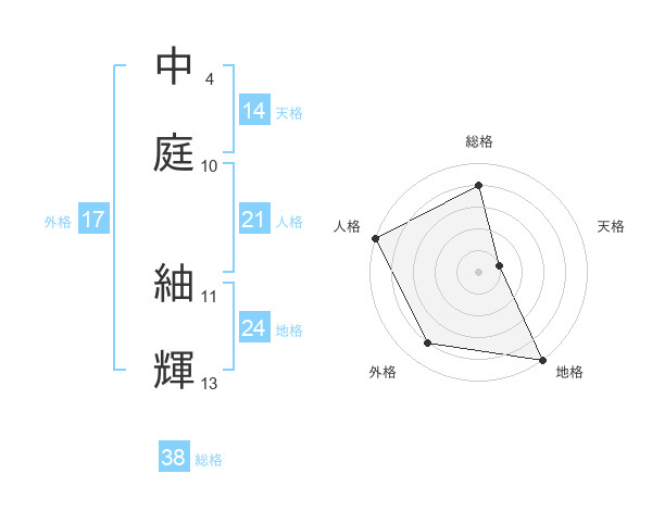 中庭 紬輝さんの総格は38画の4点!
