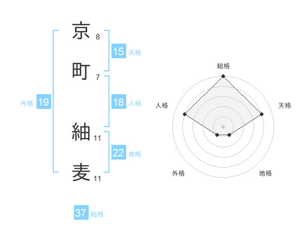 京町 紬麦さんの総格は37画の5点!