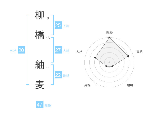 柳橋 紬麦さんを姓名の画数から五運を鑑定