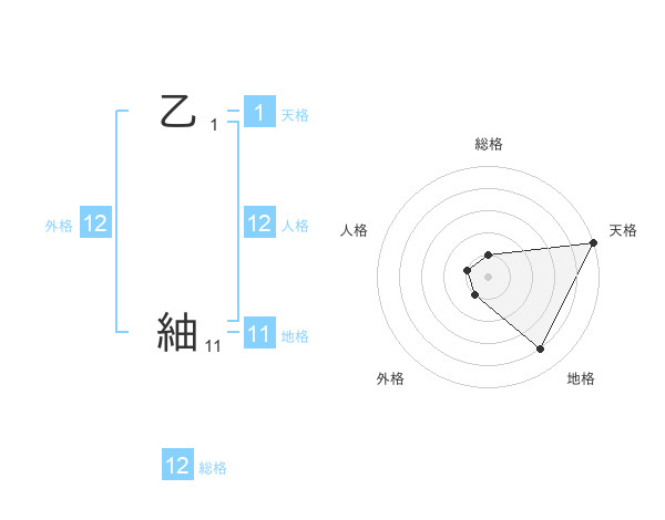 乙 紬さんの総格は12画の1点!