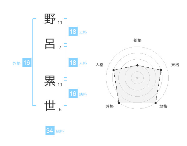 野呂 累世さんを姓名の画数から五運を鑑定