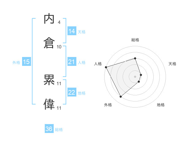 内倉 累偉さんの総格は36画の3点!