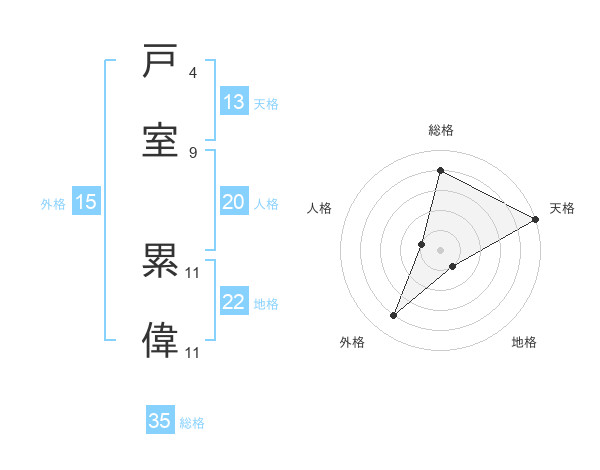 戸室 累偉さんの総格は35画の4点!