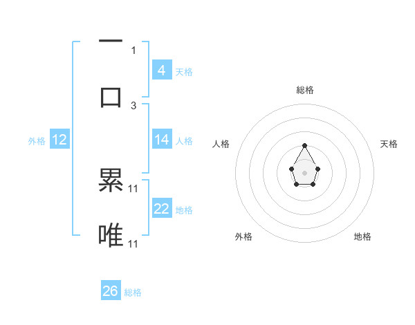 一口 累唯さんの総格は26画の2点!
