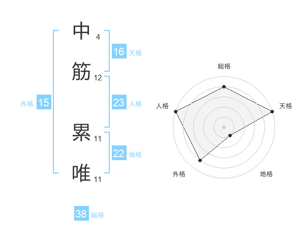中筋 累唯さんの天格は16画の5点!
