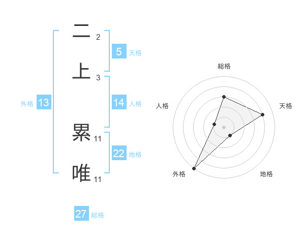 二上 累唯さんの地格は22画の1点!