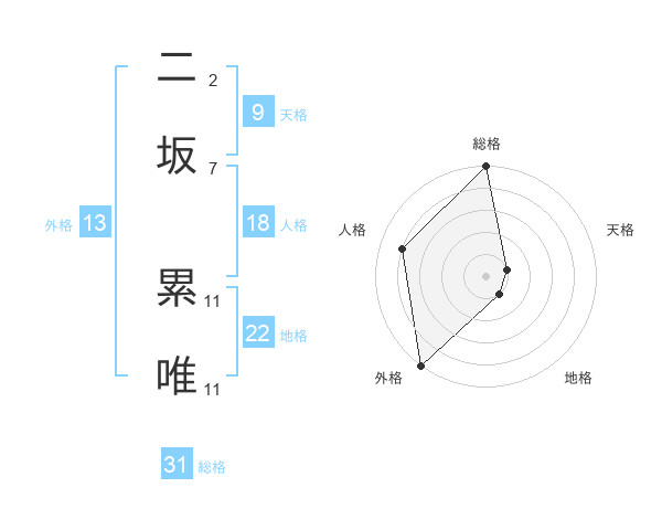 二坂 累唯さんの総格は31画の5点!