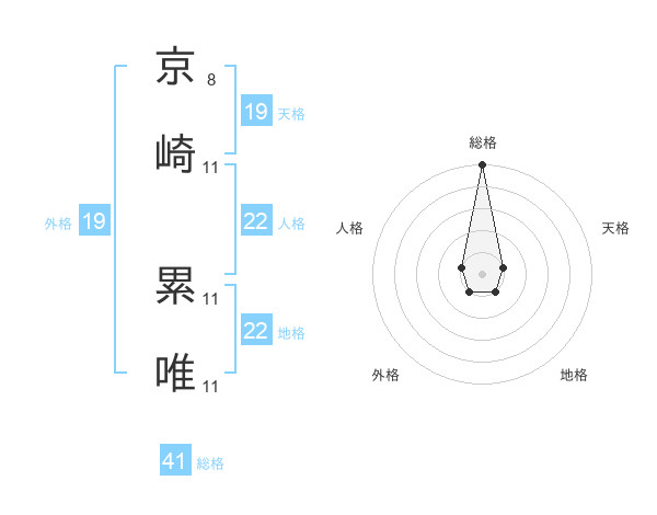 京崎 累唯さんの地格は22画の1点!