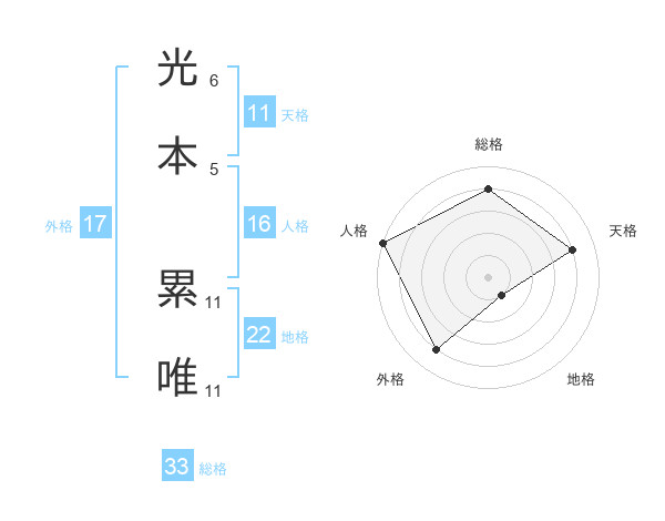 光本 累唯さんの地格は22画の1点!