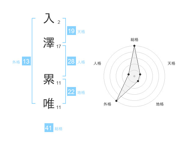 入澤 累唯さんの総格は41画の5点!