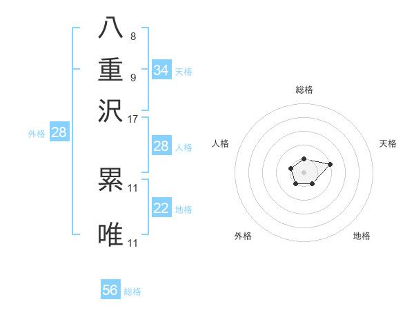 八重沢 累唯さんの総格は56画の1点!