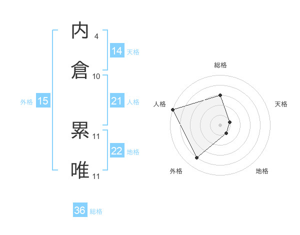 内倉 累唯さんを姓名の画数から五運を鑑定