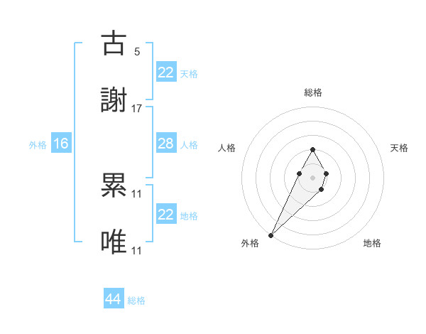 古謝 累唯さんを姓名の画数から五運を鑑定
