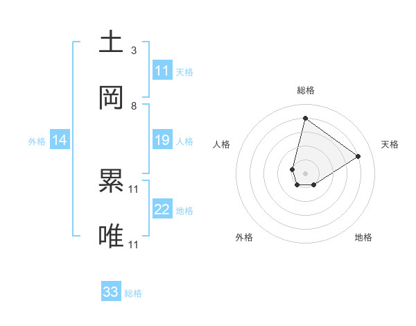 土岡 累唯さんの総格は33画の4点!