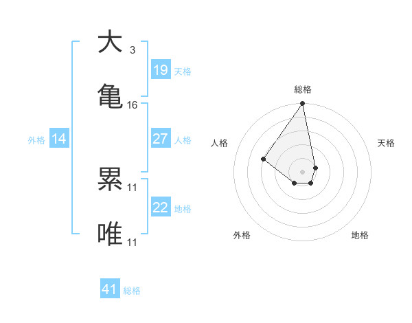 大亀 累唯さんを姓名の画数から五運を鑑定