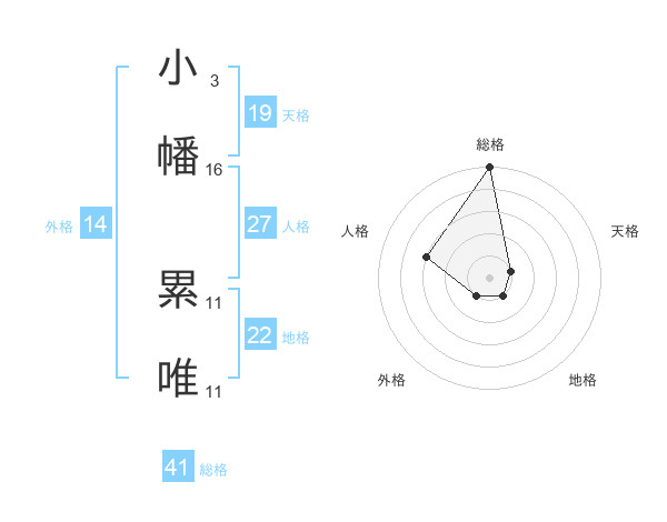 小幡 累唯さんの総格は41画の5点!