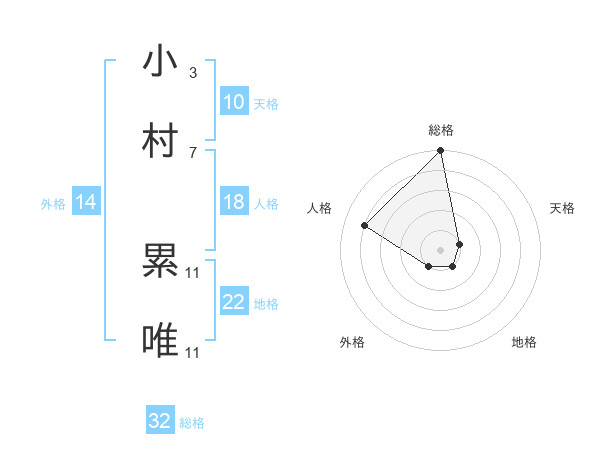小村 累唯さんの総格は32画の5点!