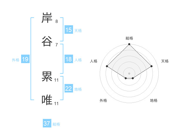 岸谷 累唯さんを姓名の画数から五運を鑑定
