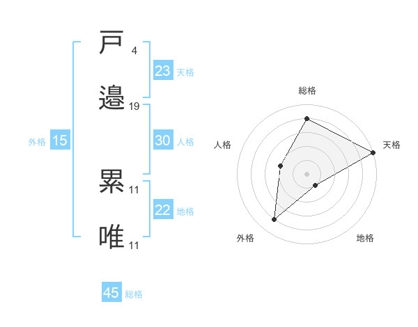 戸邉 累唯さんの総格は45画の4点!