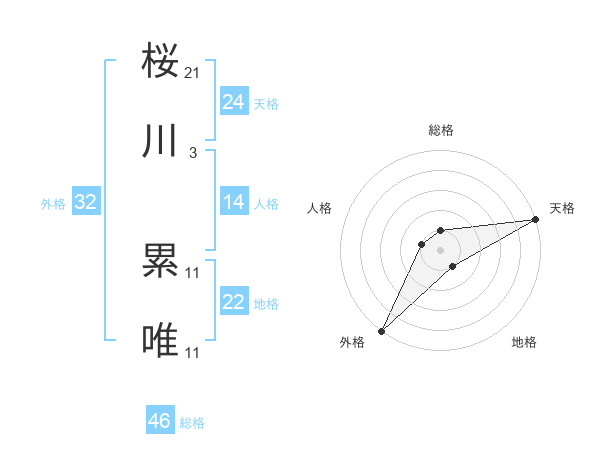 桜川 累唯さんを姓名の画数から五運を鑑定