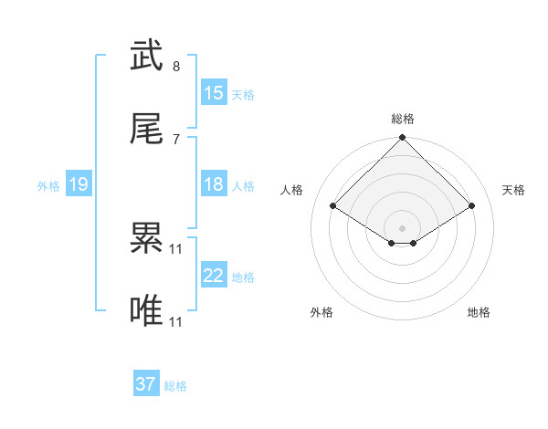 武尾 累唯さんの総格は37画の5点!