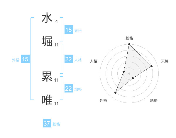 水堀 累唯さんの総格は37画の5点!