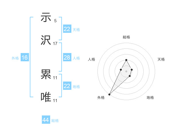 示沢 累唯さんの総格は44画の2点!