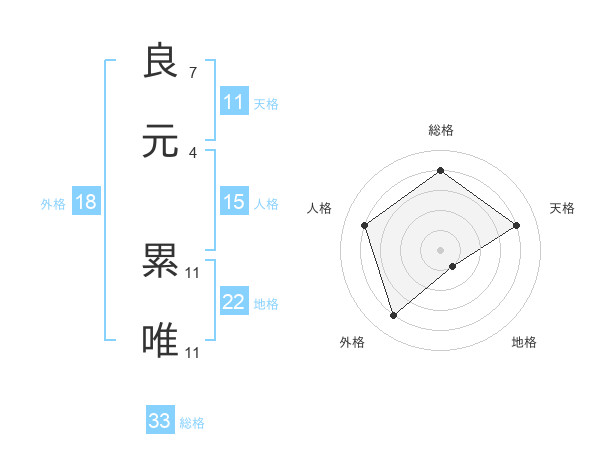 家系が持つ宿命的な運勢を表します。祖先から受け継いだ苗字ですので自分の力が及びません。家柄を象徴します。