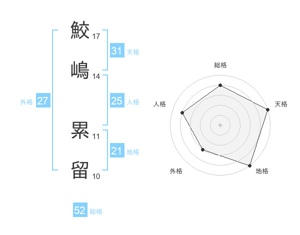 鮫嶋 累留さんの総格は52画の4点!