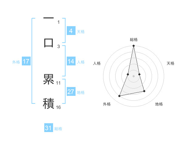 一口 累積さんの地格は27画の3点!